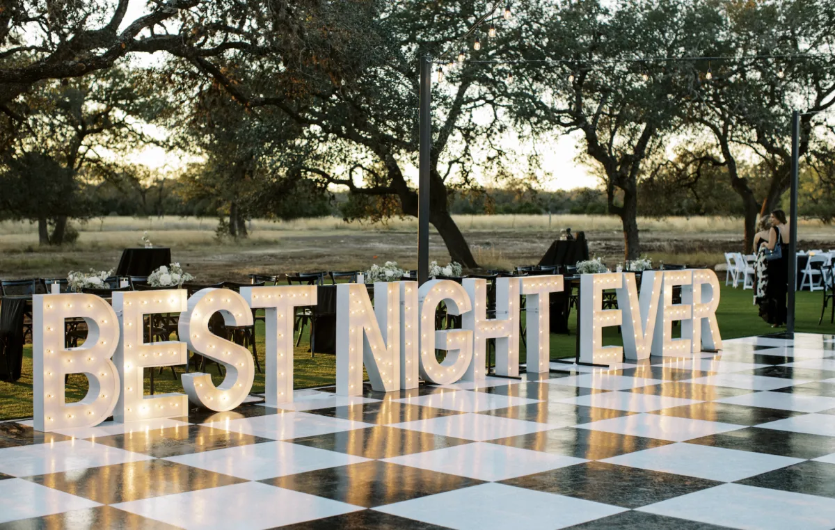 For larger ceremonies, we offer The Bluff, our main outdoor wedding ceremony space which overlooks the Guadalupe River with views of the rolling Texas Hill Country. We also offer The Greenhouse as a backdrop for an idyllic and unique ceremony that offers a more intimate setting closer to The Venue. Or, we offer our outdoor entertainment space (utilizing our turf or grass spaces), which is surrounded by sprawling oak trees and includes the Texas Hill Country as your backdrop.